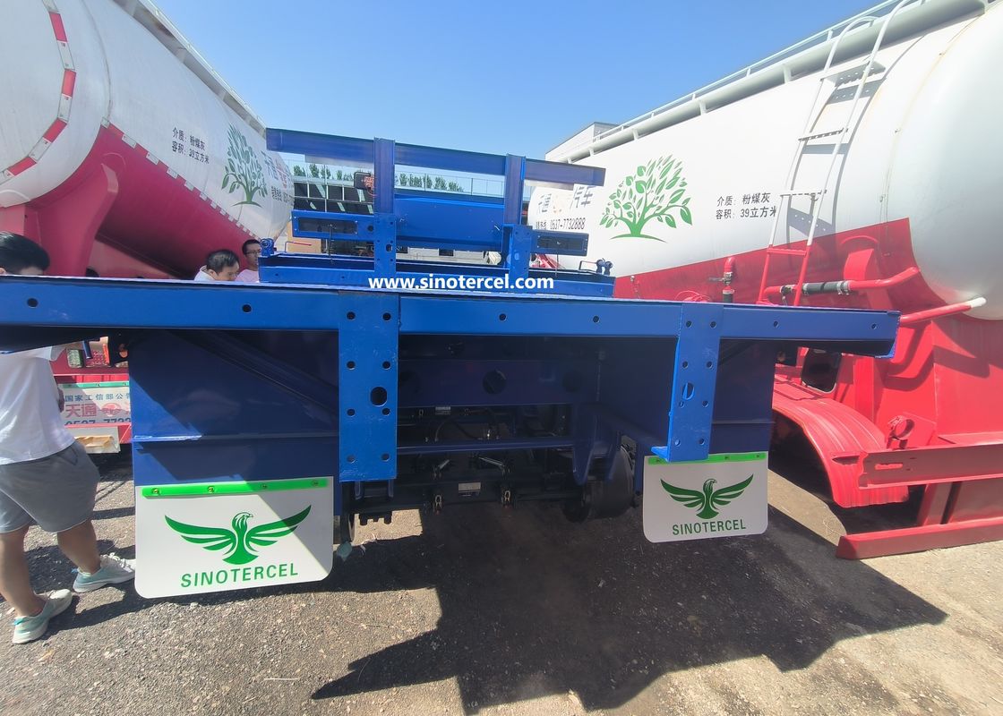 Dimensi dari Flat Bed Semi Trailer adalah 13000*3000*6mm, menyediakan platform yang luas untuk memuat dan mengangkut kargo.memastikan kekuatan dan daya tahan trailerLantai dibangun dengan pelat baja berlian 3mm, menyediakan permukaan anti-slip untuk loading dan unloading barang yang aman.