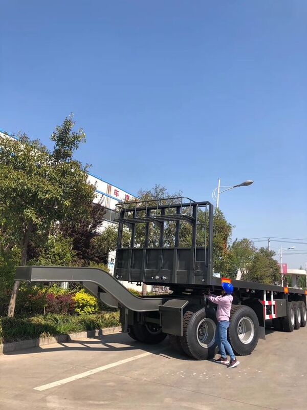 Semi-trailer flatbed 12,5 meter ini dirancang khusus untuk pengangkutan aman dan stabil 40 kaki kontainer dengan kapasitas beban yang kuat 60 ton,memberikan dukungan yang dapat diandalkan untuk operasi kargo berat.
